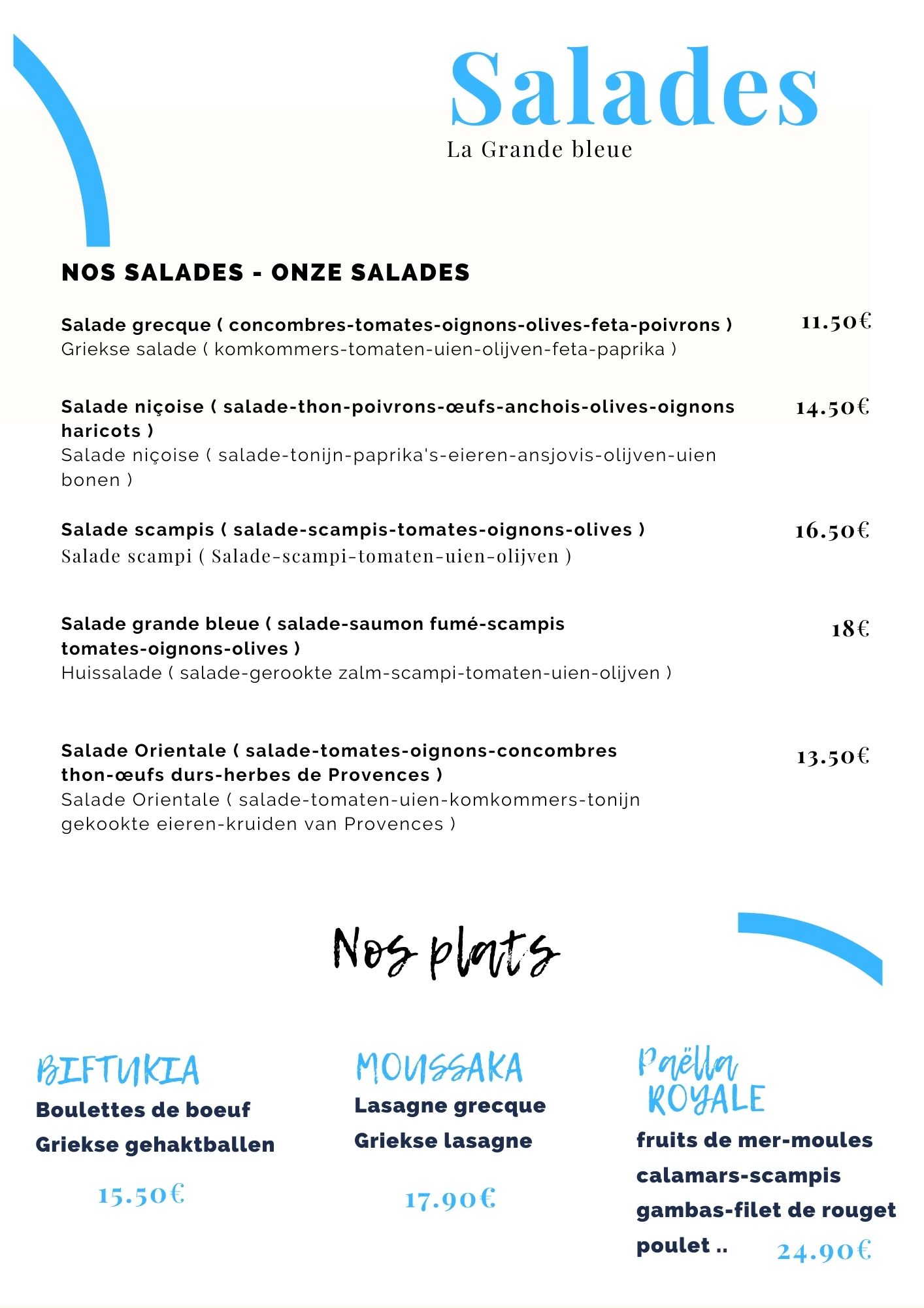 Restaurant spécialisé dans la cuisine méditerranéenne, La Grande Bleue vous accueille à Houffalize pour vous faire voyager grâce à ses plats colorés et créatifs. Entrez dans notre brasserie familiale et offrez-vous un périple gustatif unique le temps d’un déjeuner. Découvrez les saveurs de l’Espagne, de l’Italie, de la Grèce, de la Tunisie, du Maroc et du sud de la France : un goût de vacances à votre porte ! Notre chef prépare des spécialités de chaque région et partage avec vous sa passion de la cuisine à travers des menus empreints de goûts et de tradition. Entre amis ou en famille, venez profiter du cadre charmant de notre restaurant au décor méditerranéen !